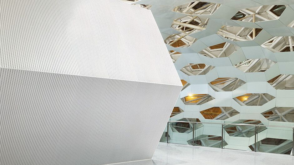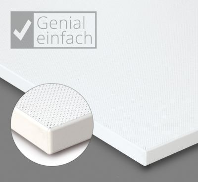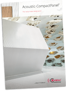 Our Acoustic-CompactBoard® is ideally suitable as acoustic wall and ceiling claddings with discreet holes of only 0.5mm diameter* and is available as an untrimmed size or as a fixed measurement. Over 320,000 holes per m² serve for pleasant room acoustics with an alpha w value of 0.8. Optional edgings, additional drillings or millings are also possible.