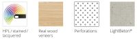 Acoustic-RibPanels consist of lamellas, which are individually manufactured with different surfaces and fixed on acoustic felt panels.
