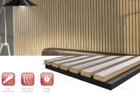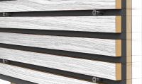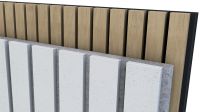 The charm of natural surfaces - in combination with the acoustic effectiveness of felt and the diffuse effect of the lamellas - make Acoustic-RibPanels a quick and easy way to improve room acoustics. Incident sound is guided through the gaps between the slats and absorbed by the felt behind them. Depending on the slat width and spacing, the acoustic effectiveness can be influenced as needed.
