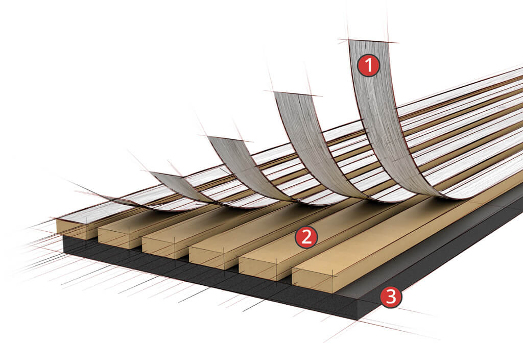 Slat thickness approx. 12.5 mm (1/2“ - depending on selected surface material)