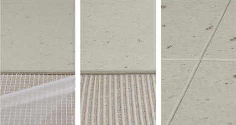 LightBeton® on a flexible carrier for direct placement and bonding in 4 mm overall thickness. For temporary applications set in place with the self-adhesive mesh or glued firmly in place with an MS polymer adhesive.