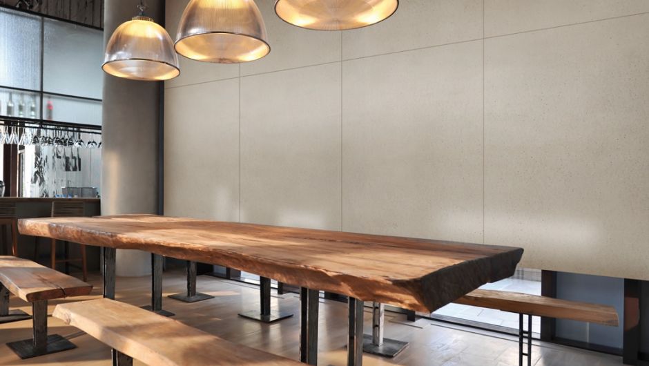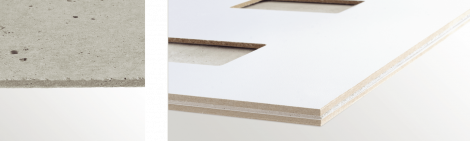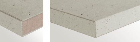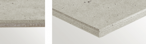 The panels that are provided with a 1.5 mm homogeneous concrete covering layer on both sides are easy to machine, e.g. for milling/shaping, bevelling and producing roundings.