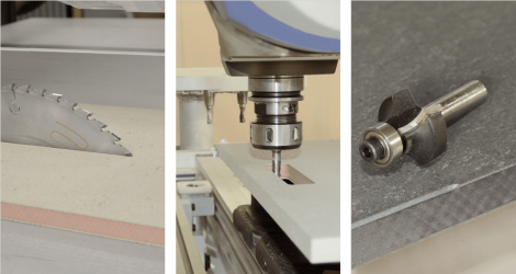 LightBeton® can be processed with all the standard carbide tools used in the woodworking industry. To cut the material saw blades with alternating teeth are preferably used. For optimum cutting and milling results as well as a longer tool life, the cutting speed and feed rate should be matched accordingly.