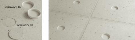 Free-standing applications, such as fronts, require a LightBeton® layer on both sides. In the case of permanently fixed elements a counteracting backing paper may be sufficient, depending on the size of the element and the installation conditions.